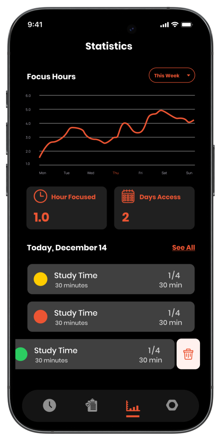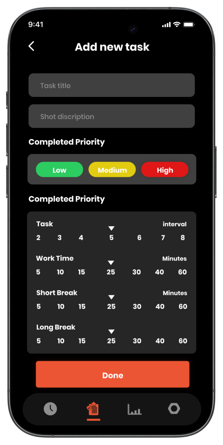 To tackle the productivity challenges users face, Pomotimer implemented several key solutions: User Interface Design: An intuitive and visually appealing interface was created through user research and testing, ensuring ease of navigation and functionality. Customization Options: The app offers customizable focus and break intervals, along with various alarm sounds, integrated seamlessly into a simple settings menu. Data Privacy: Pomotimer prioritizes user privacy by avoiding personal data collection and transparently communicating privacy policies.